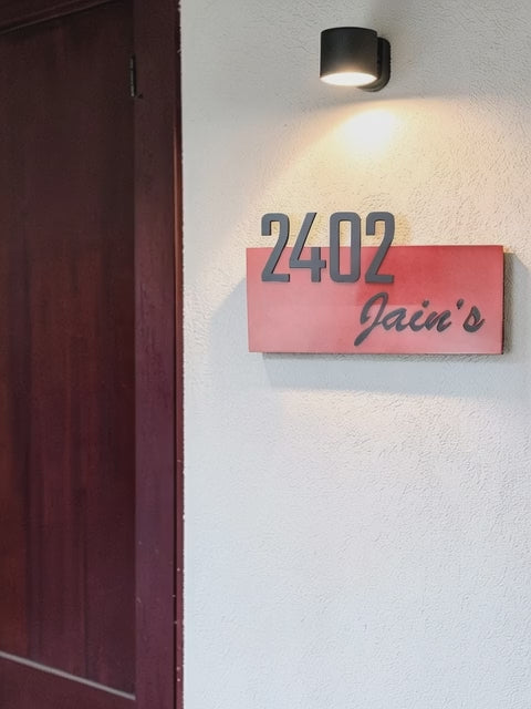 - Elevate your space with this striking nameplate that merges timeless elegance with modern design.